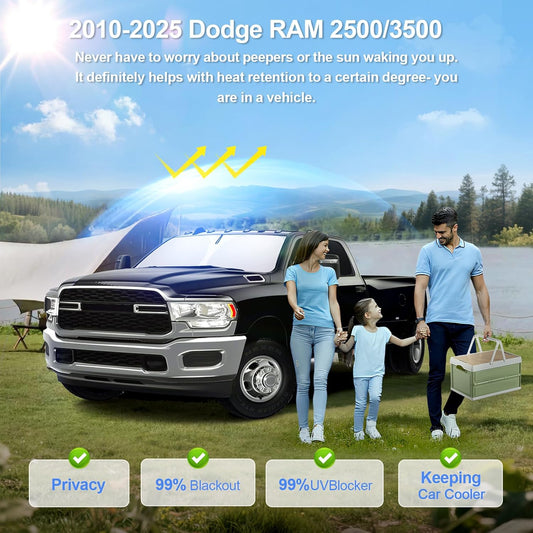 6pcs Car Window Shades for Dodge RAM 2500 3500 2010-2025 Accessories,Windshield Side Rear Full Sunshade,Sun Visor UV Blocking, Privacy Protection and Blackout for Camping Outdoor