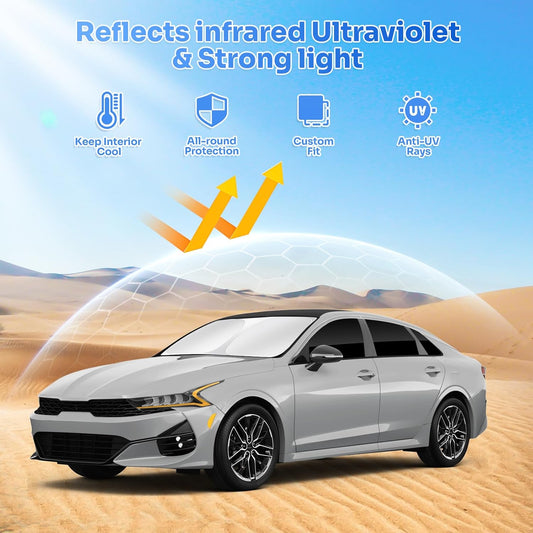 Windshield Sun Shade for 2024-2025 2026 Hyundai Kona Accessories Thicken 6-Layer Front Window Sunshade Cover Sun Visor Protector Foldable Block UV Rays Keep Vehicle Cool