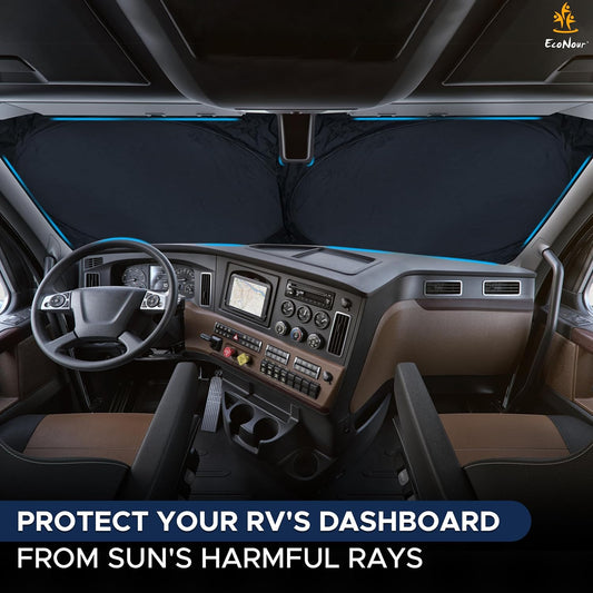 EcoNour RV Windshield Sunshade | Reflective RV Windshield Cover for UV Rays & Heat Protection, Keeps Your RV Motorhome Cool | Shades for RV Fits RVs, Trucks, Motorhomes, Buses | XXXXX-Large 102"x51"