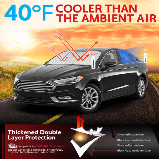 KAYZT Windshield Sun Shade for 2013-2021 Ford Fusion Foldable Sunshade Front Window Custom Fit Car Accessories