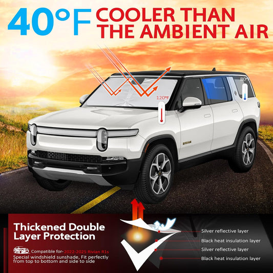 KAYZT Windshield Sun Shade for 2022-2025 2026 Rivian R1S Foldable Sunshade Front Window Custom Fit Car Accessories