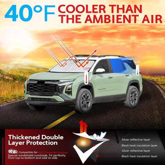 KAYZT Windshield Sun Shade for 2025 2026 Che-vrolet/Chevy Equinox (Not for Equinox EV) Foldable Sunshade Front Window Custom Fit Car Accessories