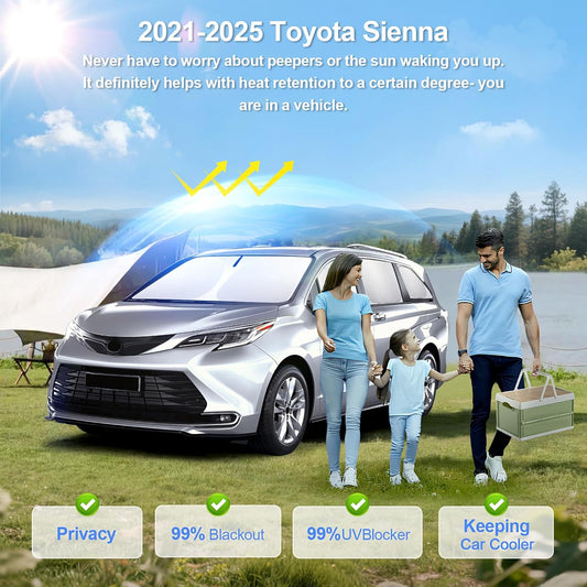 8pcs Car Window Shades for Toyota Sienna 2021-2025 Accessories,Windshield Side Rear Full Sunshade,Sun Visor UV Blocking, Privacy Protection and Blackout for Camping Outdoor