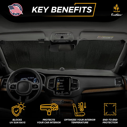 EcoNour Accordion Car Windshield Sun Shade for Trucks | Car Window Shades for Large SUVs & Pickups | UV Blocker Sun Visor for Interior Protection & Heat Control | XL (66 x 27 Inches)