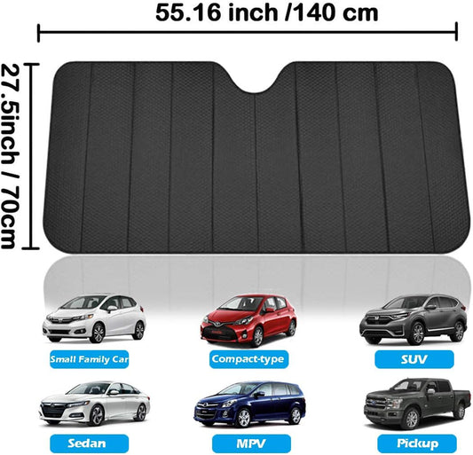 Big Ant Windshield Sun Shade UV Rays Sun Visor Shade,Auto Front Windshield Sunshade Car Folded Sun Shield Shade,Keeps Vehicle Cool - Black (55" x 27.5")