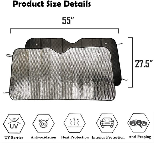 Windshield Sunshade Car Foldable UV Ray Reflector Auto Front Window Sun Shade Visor Shield Shade,Keeps Vehicle Cool - Blue (55" x 27.5")