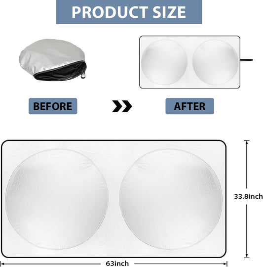Windshield Sun Shade with Storage Pouch for SUVs, Durable 190T Polyester Sun Shield for Front Window, Portable Carry Car Accessories, Standard (63 inches x 34 inches)