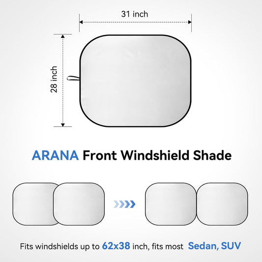 ARANA Car Windshield Sun Shade 2 Piece丨240T Thickened Front Window Sunshades Blocking 99% UV & Heat丨2025 Upgrade Sun Visor Keeps Car Cool丨Universal Fit for Sedan, SUV, Truck, Medium 31"x28"