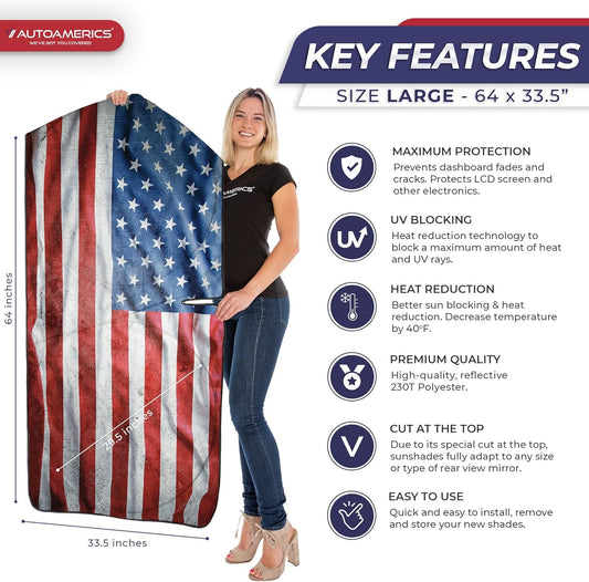 Autoamerics Truck Windshield Sun Shade with Storage Pouch & Anti-Slip Dash Pad - Foldable Original USA Flag Design - Fits Most SUVs & Trucks - Blocks UV Rays, Keeps Vehicle Cool | X-Large (66 x 36 in)