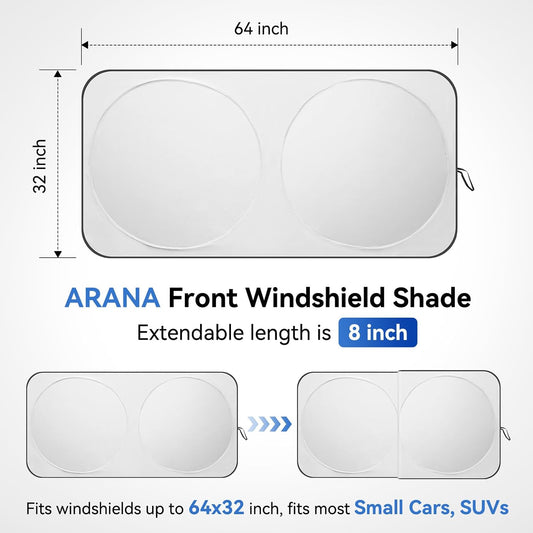 ARANA Car Windshield Sun Shade丨240T Thickened UV Blocking Automotive Sunshades丨2025 Upgrade Heat & Light-Proof Sun Visor Keeps Car Cool丨Universal Fit Sedan/SUV/Truck/Van (64"x32")