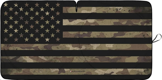 Autoamerics 1-Piece Windshield Sun Shade Brown Camo American Flag USA Design - Foldable Car Front Window Sunshade for Most Sedans SUV Truck - Blocks Max UV Rays and Keeps Your Vehicle Cool - Large