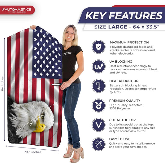 Autoamerics 1-Piece Windshield Sun Shade New American Eagle Flag USA Patriotic Design - Foldable Car Front Window Sunshade for Sedans SUV Truck - Blocks Max UV Rays and Keeps Your Vehicle Cool - Large