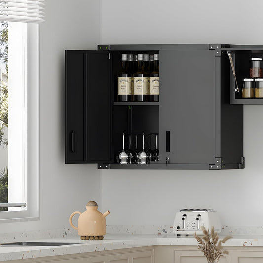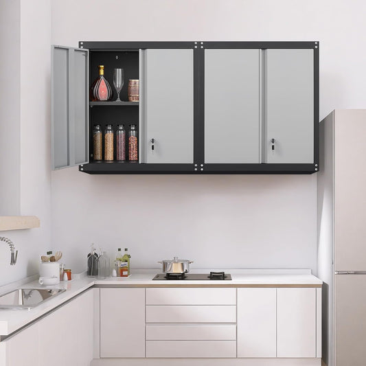 Garage Wall Cabinet,Metal Wall Cabinet with Doors and Adjustable Shelves,Steel Utility Wall Mounted Tool Cabinets for Home,Office,Kitchen,Warehouse