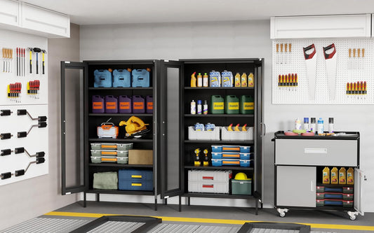 GREATMEET Garage Cabinets with Wheels, Black Garage Storage Cabinets with Doors and Adjustable Shelves,Rolling Lockable Metal Garage Storage Cabinets for Home Office Utility Room