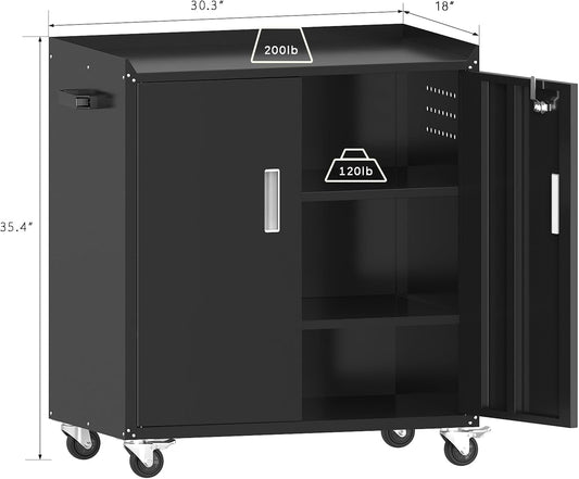 Metal Garage Storage Cabinet with Wheels ,Lockable Rolling Tool Chest on Wheels, Utility Cabinet for Home, Office, Garage and Workshop(Black)