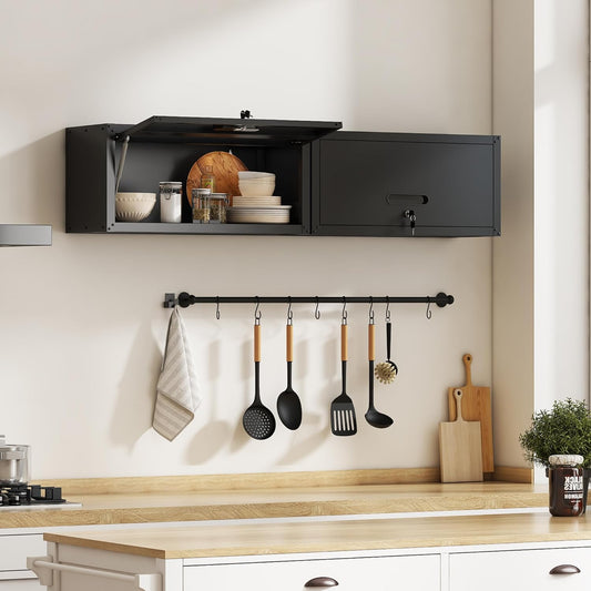 GREATMEET Metal Garage Storage Cabinets, Lockable Storage Cabinet with Doors, Wall Mount Cabinet Storage with Lock, Hanging Floating (Black, 13" H)