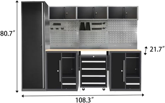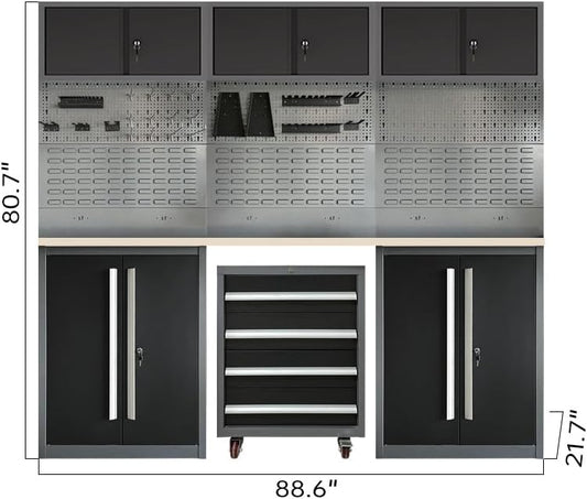 Metal Tool Cabinet,Garage Storage Cabinet System,Wall Cabinet & Locking Rolling Tool Cabinet with Doors and Adjustable Shelves,Steel Tool Cabinets for Home,Office (9 Pcs-StyleA, Black & Grey)