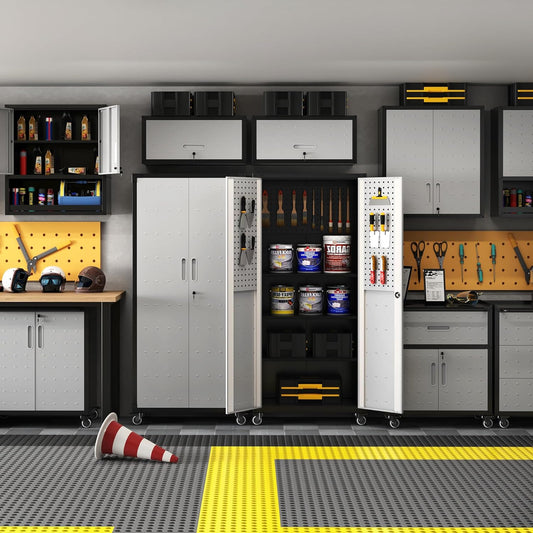 JZD Garage Tool Storage Cabinet System, Included Pegboard Back Panel, No Wall Mounting Needed, for Machine Shop Production Area