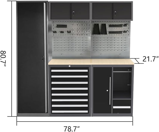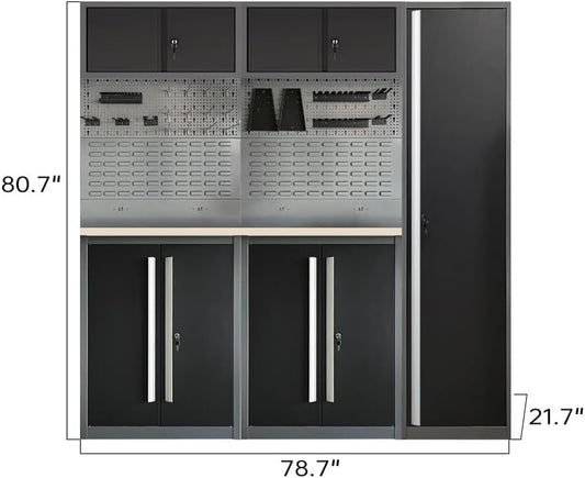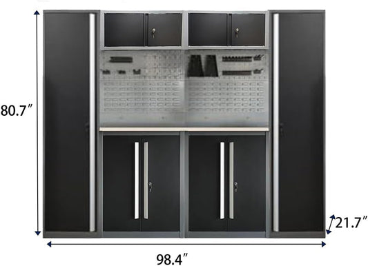 JZD Garage Cabinet System, Tool Storage Cabinets Set with Wooden Tabletop, for Workshop Utility Room