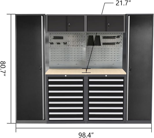 Steel Garage Storage Cabinet System, Tool Cabinets with Drawers, for Workshop Auto Repair Shop, Wall Mounting Not Necessary