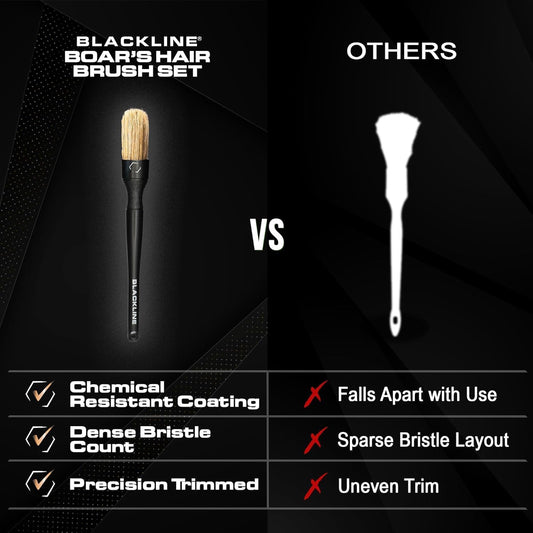 Blackline Car Care Boar Hair Brushes- Luxury Car Detailing Brush Set for Interior and Exterior - Best Auto Detailing Brushes - Premium Hair Car Detailing Brushes (Boars Hair Bristles)