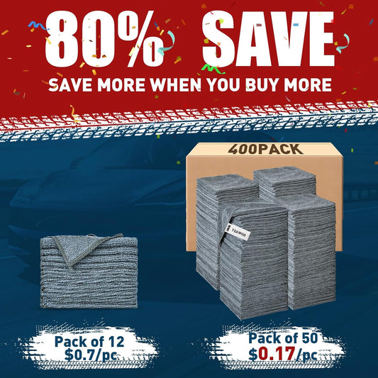 Microfiber Cleaning Cloths Bulk-400 Pack, Gray Microfiber Towels for Cars, Ultra Absorbent Wash Cloths, Lint-Free Streak-Free Microfiber Towels Bulk for Cars, 12x12 inches