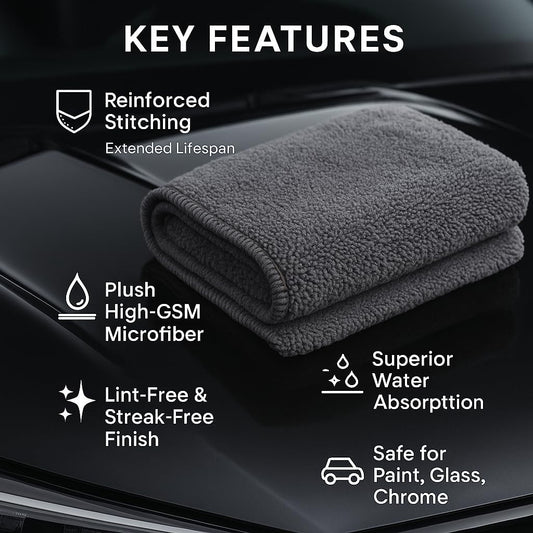 Adam's Borderless Grey Microfiber Towel (12pk) - Premium Ultra Soft Car Detailng Towel Cloths, 480gsm - Safe for Car Wash, Home Cleaning & Pet Drying Cloths (16 Inch x 16 Inch)