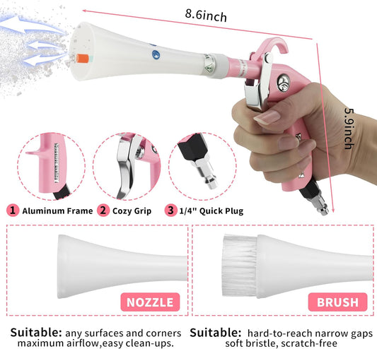 XIAOFENG Tornado Dry Cleaning Gun Detailing Interior Dryer Air Blow Gun with 2 Set Nozzle High Pressure Car Drying Blower Gun for Women Car Quickly Blasts Dirt and Dust from Surface Pink