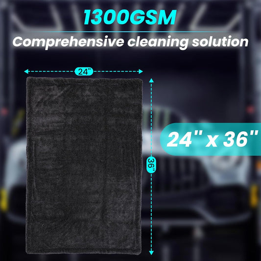2 Pack 1300 GSM Car Drying Towel,Double-Sided Microfiber Towels for Cars(24'' x 36''&16 ''x 16''),Extra Large Ultra Absorbent,Without Residual Lint,Scratches or Water Spots