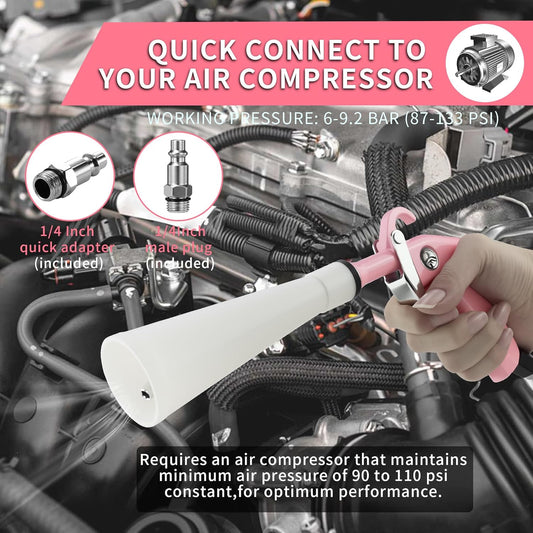 Tornado Dry Cleaning Gun Detailing Interior Dryer Air Blow Gun High Pressure Blower Gun for Women Car Detailing Kit Interior Cleaner Works with Air Compressor and Quickly Removes Surface Dirt Pink