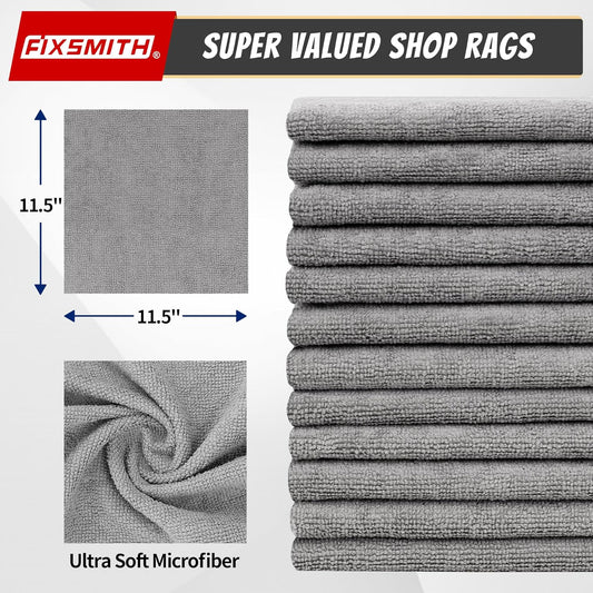FIXSMITH Shop Towels, Microfiber Cleaning Cloth Bulk, 24 Pack Microfiber Towels for Cars, All-Purpose Absorbent Cleaning Rags, Dust Cloth for Automotive, Mechanic, Garage, Bar, 11.5 x 11.5 inch