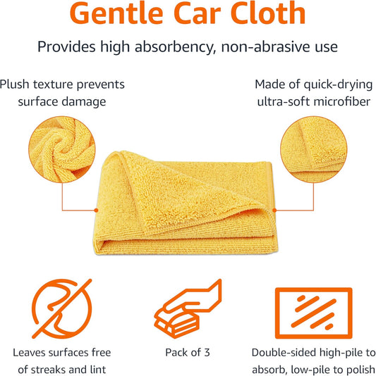 Amazon Basics Microfiber Car Drying Towels (3-Pack), Lint Free, Scratch Free, Highly Absorbent Drying Towel for Cars, 16" x 16", Yellow