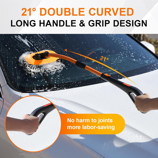 Upgrade Car Wash Brush Mop with Long Handle, Car Washing Brush Kit with Scratch-Free Replacement Head