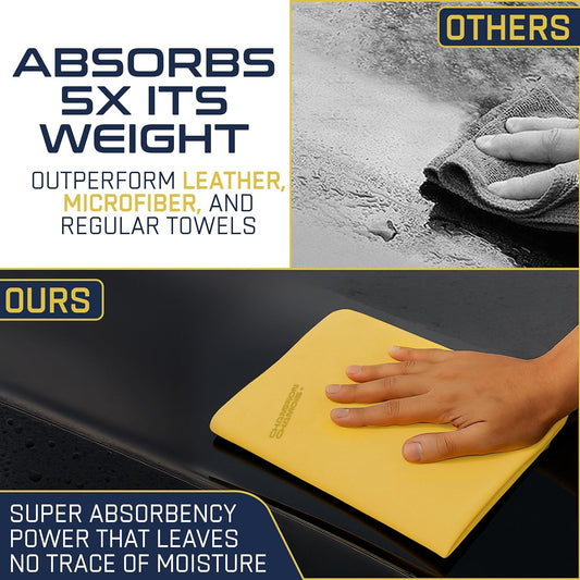 Premium Large Shammy Towel for Car - 2pk (26"x17") - Super Absorbent, Streak-Free, Lint-Free, Scratch-Free Cloth for Cars, Boats, Home - Long Lasting Synthetic Leather Chamois + Hanging Storage Tubes