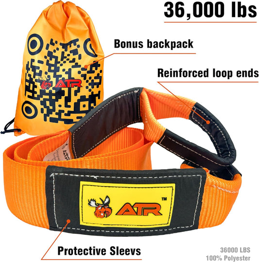 ATR Recovery Tow Strap 3.5" x 20ft – 36,000 lbs Break Strength, Heavy Duty Snatch Strap for Truck, SUV, UTV, Off-Road Pulling, Tow Rope with Storage Bag