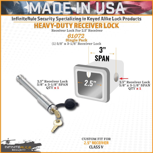 2" & 2.5" Receiver Lock, Heavy Duty Hitch Lock Pin, American Made In USA, Best Truck Accessories - Locking Hitch Pin, 5/8 Hitch Pin Lock, Anti-Theft Hitch Pin, Towing Accessories