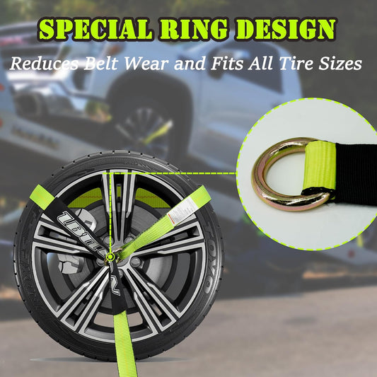 4 Pack Car Tie Down Straps for Trailers - 2" x 96" - 3,300 lbs Safe Working Load -Adjustable Wheel Straps for Hauling Cars.
