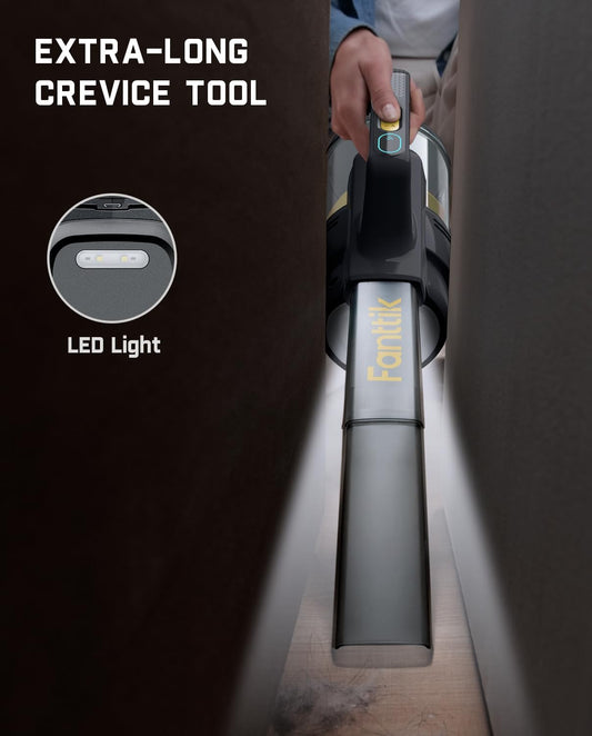 Fanttik Cruise V9 Car Vacuum Cleaner Suction Power with 15000Pa Handheld Vacuum Cordless with Extension Tube & LED Display & Light, Cordless Portable Mini for Home Car Cleaning, Black
