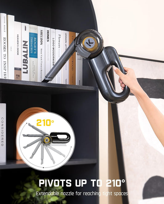 E.LUO Cordless Vacuum Cleaner 350W/≥24KPA Powerful Stick Vacuum with Led Screen Max 60 Mins Runtime Vacuum Cleaner with Rechargeable 2500 mAh Battery for Home Hard Floor Carpet Car Pet