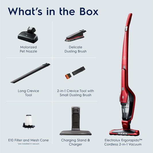 Electrolux Ergorapido Pet Cordless 2-in-1 Vacuum Cleaner with Motorized Pet Nozzle for Easy Pet Hair Removal, 48-Minute Run Time, 2 Power Modes, Chili Red