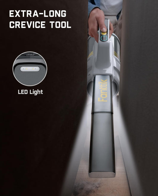 Fanttik Cruise V9 Car Vacuum Cleaner Suction Power with 15000Pa Handheld Vacuum Cordless with Extension Tube & LED Display & Light, Cordless Portable Mini for Home Car Cleaning, White