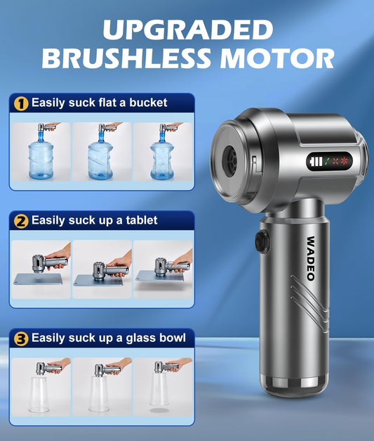 WADEO Handheld Vacuum Cordless, 4-in-1 21000PA Brushless Car Vacuum & 210000RPM Air Duster 7500mAh Battery Air Blower Wireless Handheld Vacuum for Car, Office and Home Cleaning