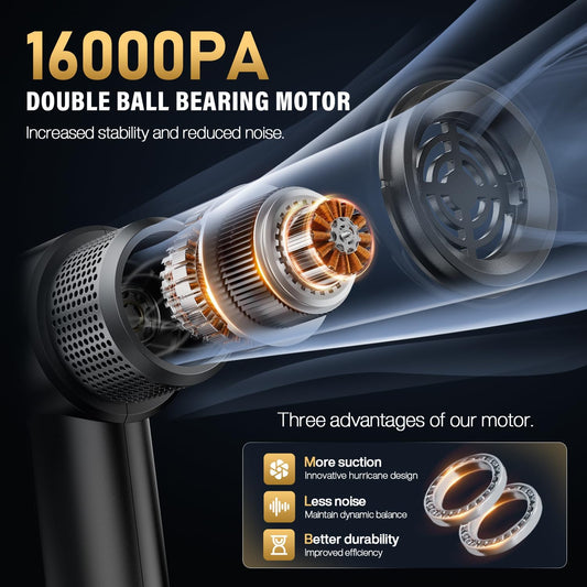 Handheld Car Vacuum Cleaner, 16000PA Car Vacuum Portable Cordless,4 in 1 Air Duster and Vacuum Cleaner with LED Light,Dual Filters, High Power Handheld Used for Home, Pet, Office
