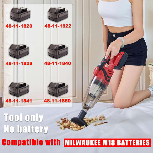 Cordless Vacuum Cleaner for Milwaukee M18 Battery,Wireless Handheld Power Vacuum Cleaner for Home, Boat, Workshop, Car, Pet Hair, Furniture(Tool Only No Battery)