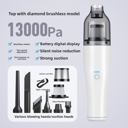 Wireless car-Mounted Vacuum Cleaner 13000PA Suction Handheld Vacuum USB Charging Cleaner Portable Vacuum Cleaner Hair Suction Device Cleaning for car interiors (White brushless Vacuum cl)