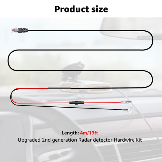 Radar Detector Hardwire Kit with RJ-11 Telephone Style Jack Direct Wire Wiring Kit Compatible with Escort Valentine One Uniden Beltronics Cobra Multiple Fuse Sizes Power Cord Cable