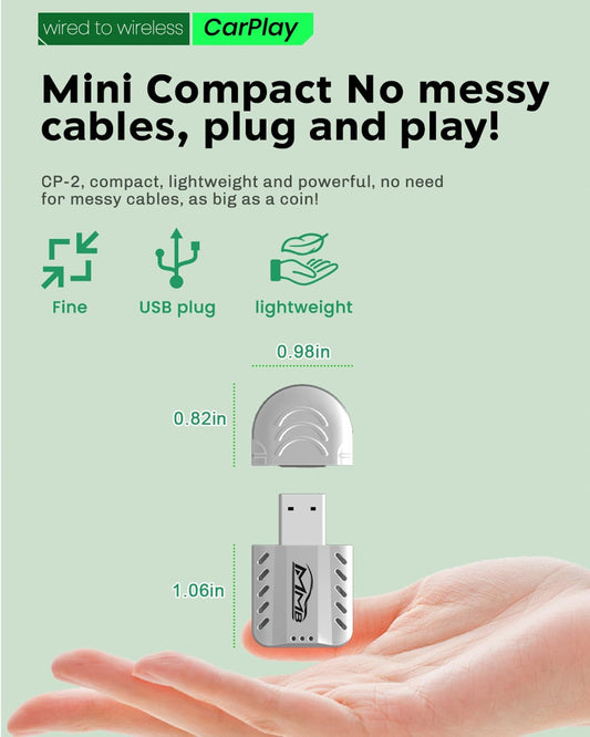 Mini Wireless CarPlay Adapter for iPhone - Convert Wired to Wireless | Bluetooth 5.3 | Plug & Play | iOS 10+ Car Systems 2015+ (for Factory CarPlay)