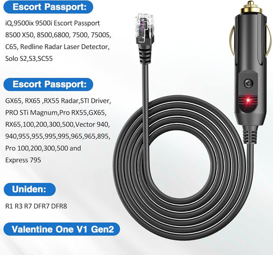 Radar Detector Power Cable Compatible with Escort Max 360 passport 9500ix Valentine One Radenso XP/SP Beltronics Pro RX65 DFR6 DFR7, Replacement Radar Detector Power Cord with RJ11 Ports 6.5ft
