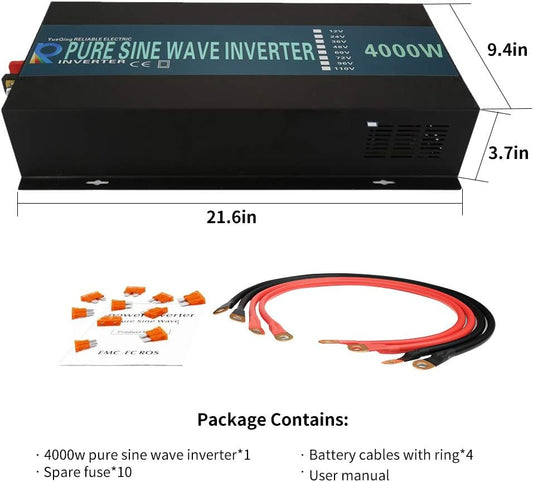 WZRELB Home Power Supply Off Grid Pure Sine Wave 12Vdc to 120Vac 60Hz 4000W Power inverter Off Grid Application Power Converter, (RBP400012B1)