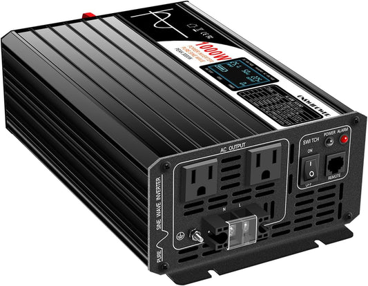 Xijia Pure Sine Wave Solar Power DC rv Converter to AC 120V 60HZ Solar Converter for Home Use car (DC12V (Range 10V-15V) 1000W-LCD)